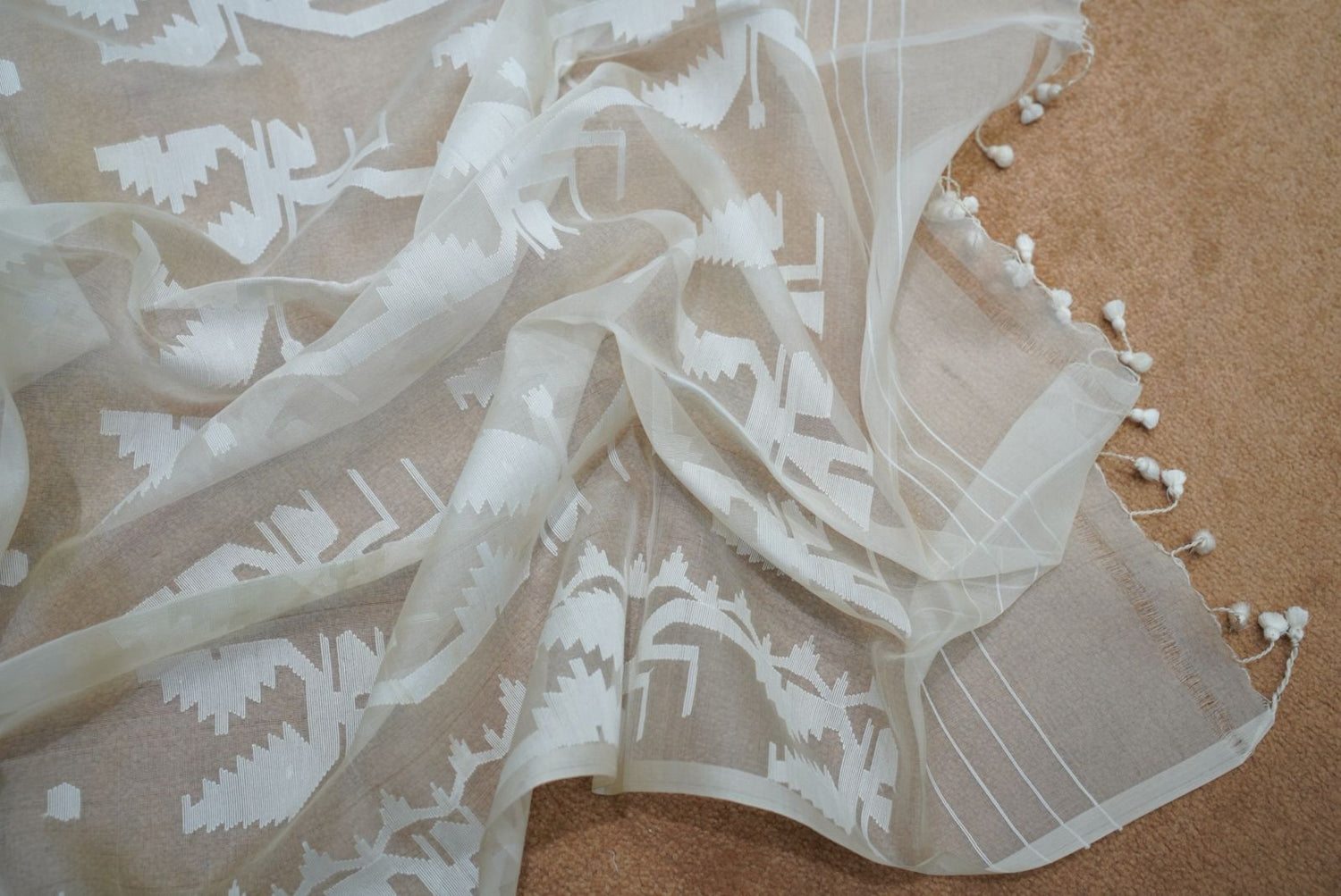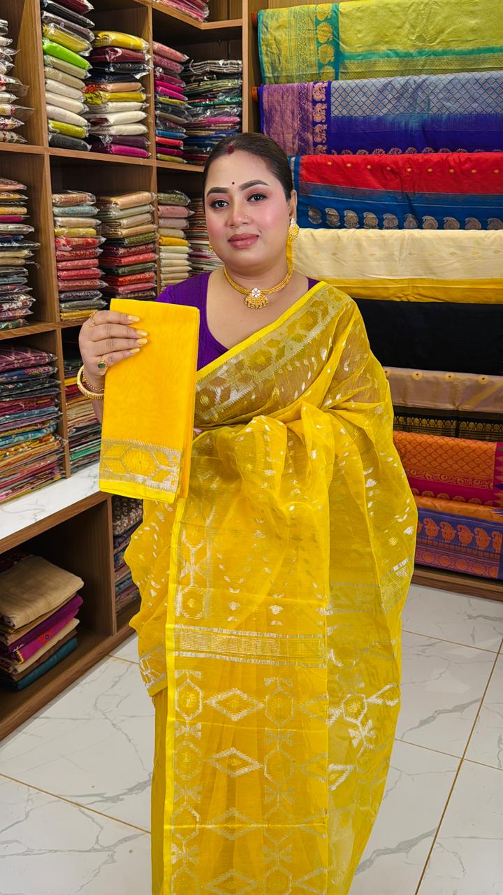 Bangladeshi Dhakai Jamdani SareeKey Features & Benefits Fabric: Handwoven from the finest...