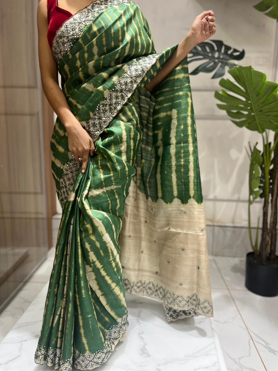 Pure Tussar Gujarati Saree A vibrant fusion of culture and luxury —...