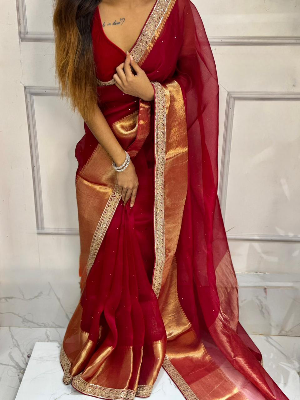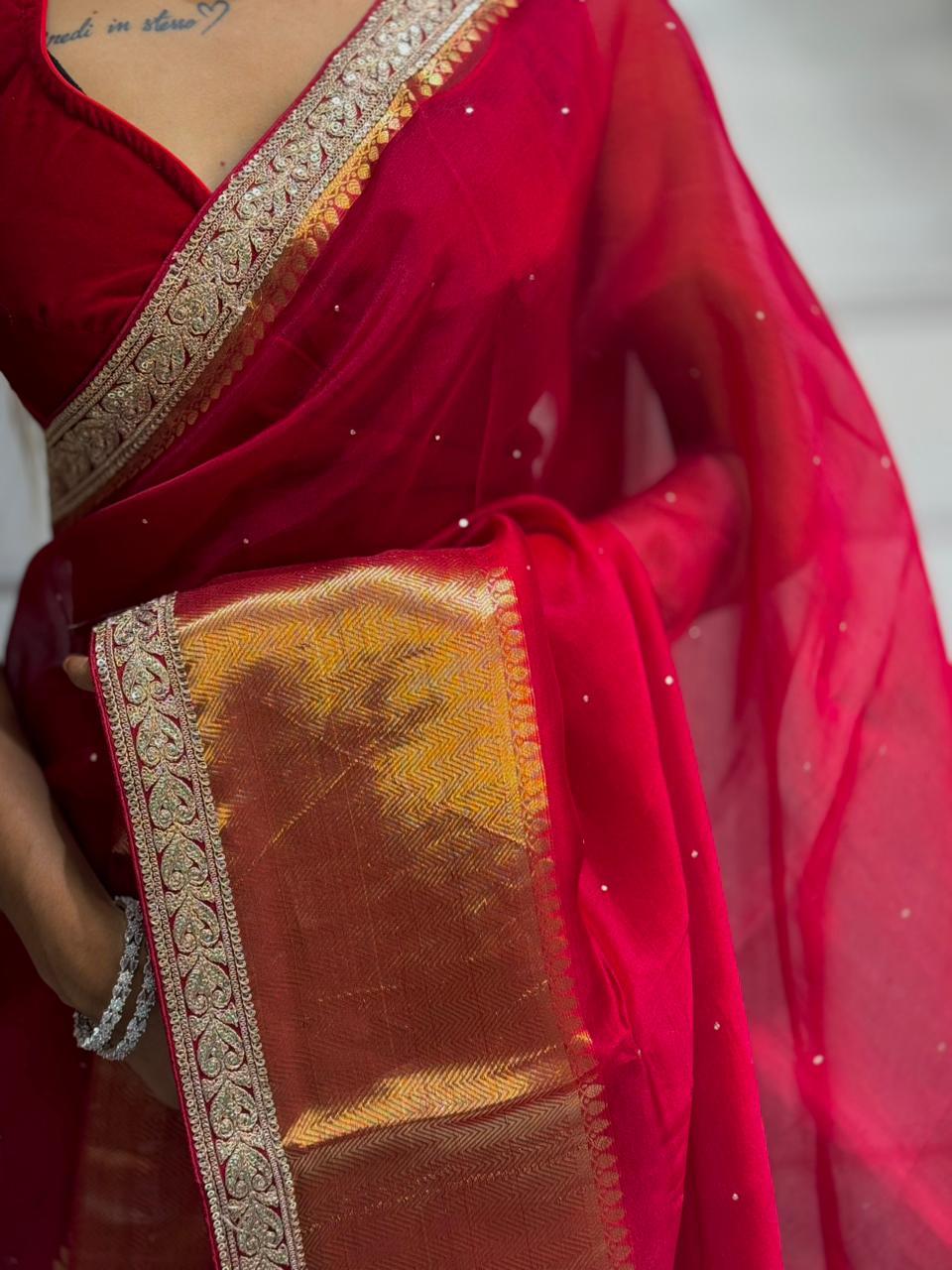 The Designer Saree combines luxury and modern elegance in the most graceful way. Its stylish detailing, premium drape, and high-fashion appeal make it the perfect choice for women who love to look stunning without effort. Whether styled traditionally or with a contemporary twist, this saree guarantees a glamorous and unforgettable look.