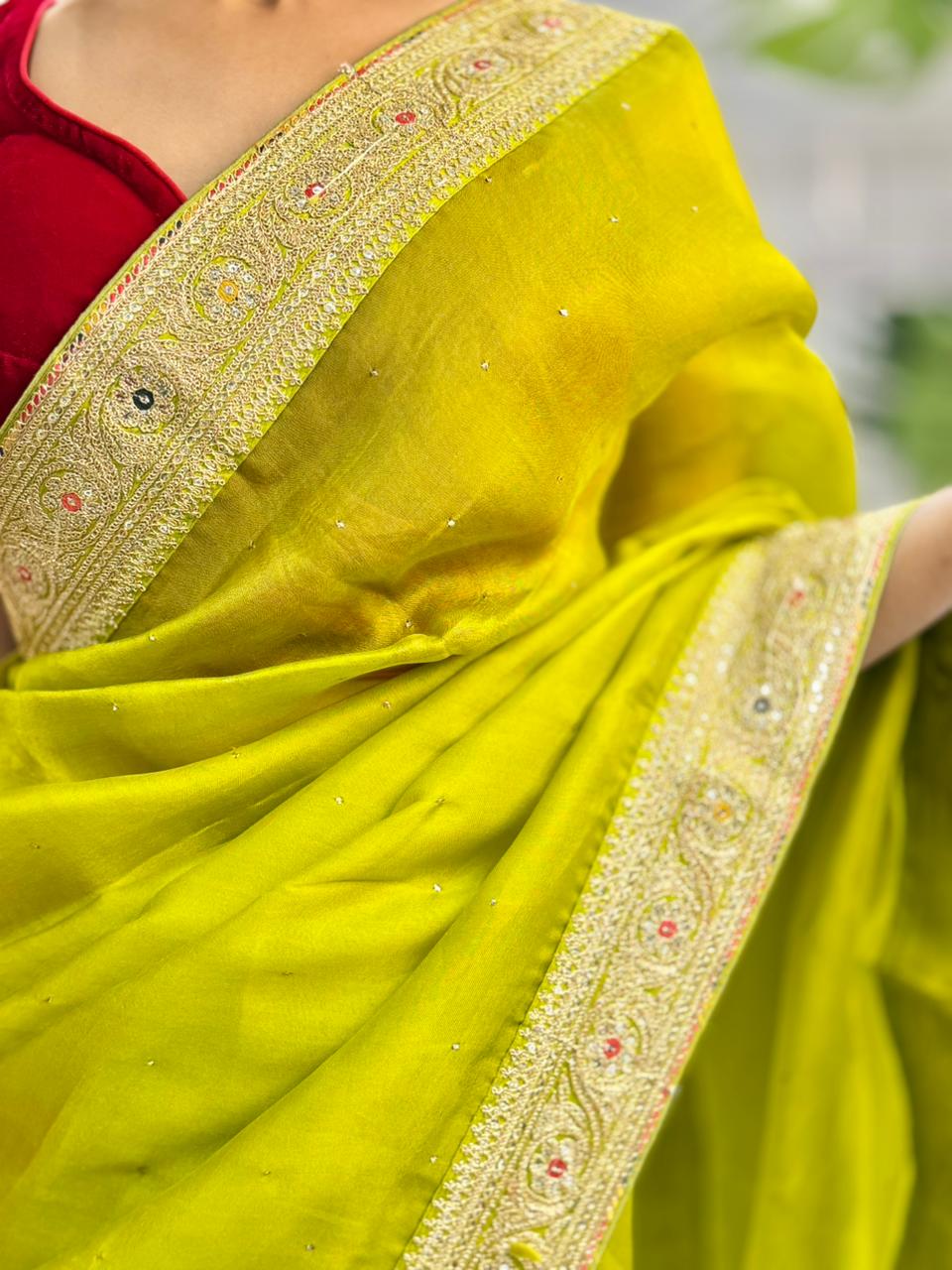 Blouse Piece: Yes, included (unstitched) — designed to complement the saree’s overall theme.