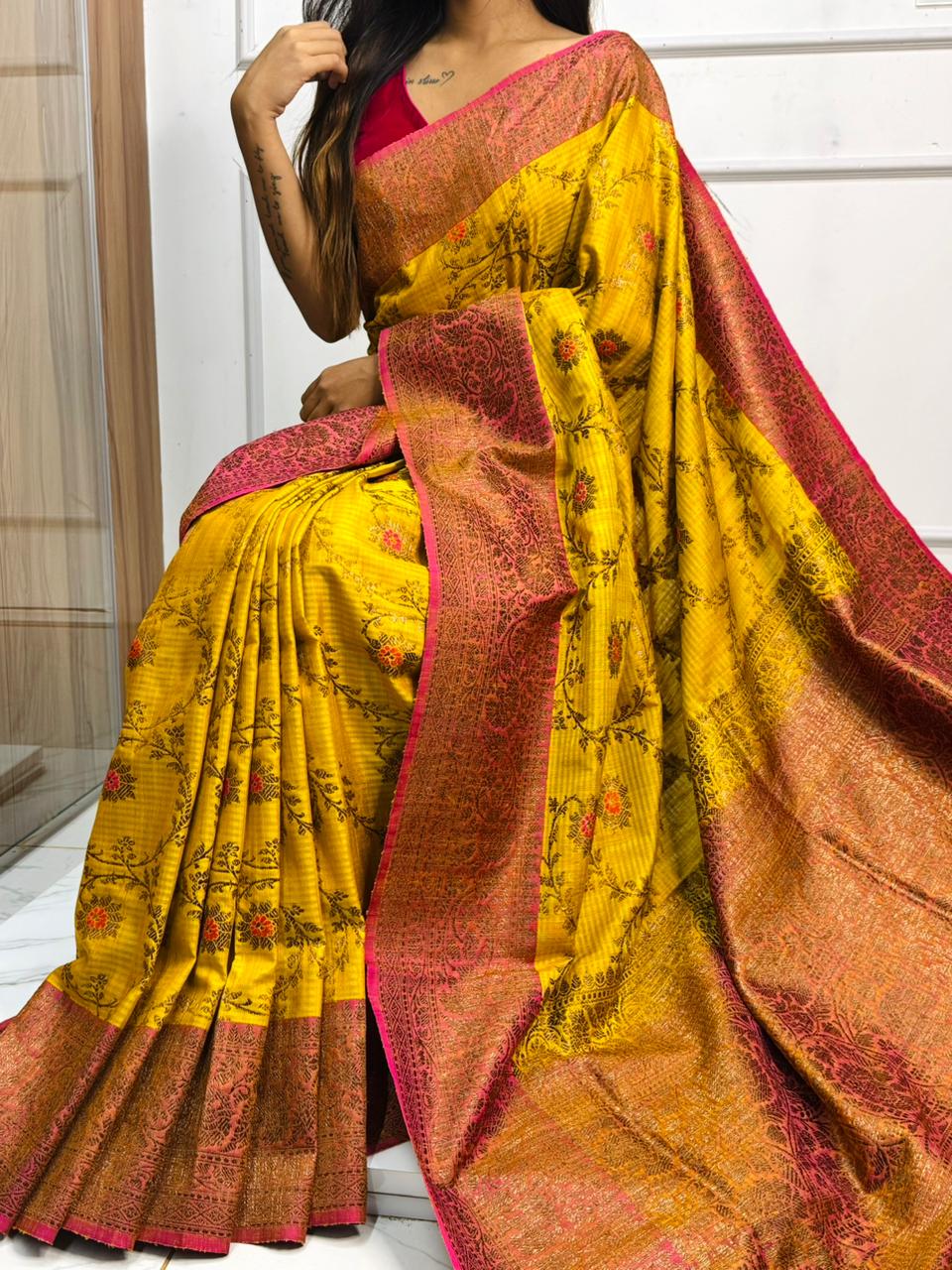 This saree captures the essence of raw luxury — soft yet structured, traditional yet effortlessly stylish. The Pure Dupion Tussar Saree drapes beautifully, adding a graceful glow that makes you stand out with understated sophistication.