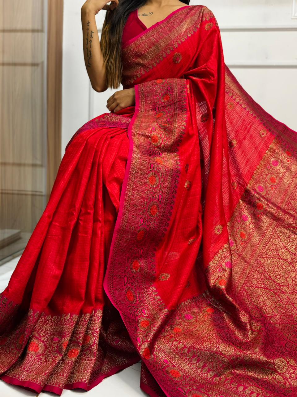 Pure Dupion Tussar Saree