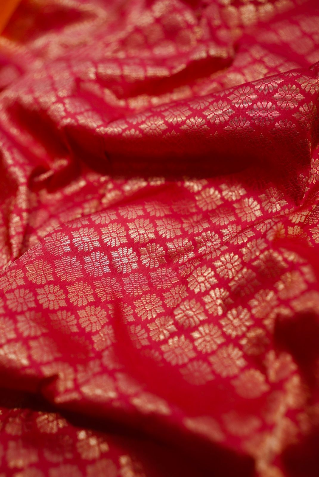 Fabric: Pure Kanjivaram Silk, known for its durability, sheen, and luxurious texture.