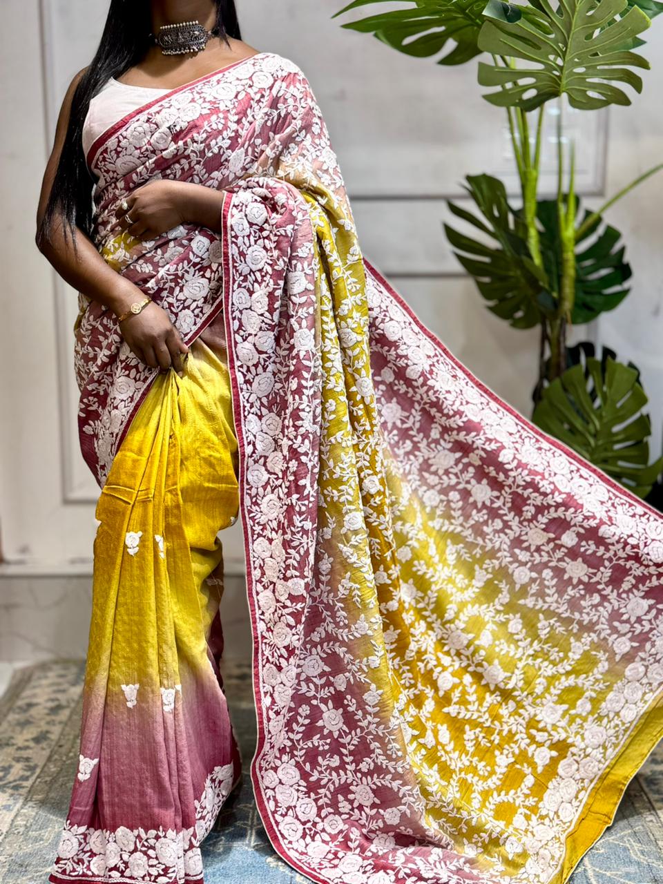 Care Instructions: Dry clean only to preserve the embroidery and silk texture.