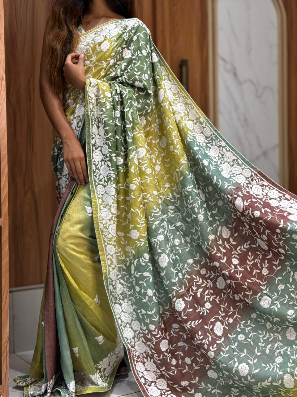 Pure Hand Parsi Tussar Saree