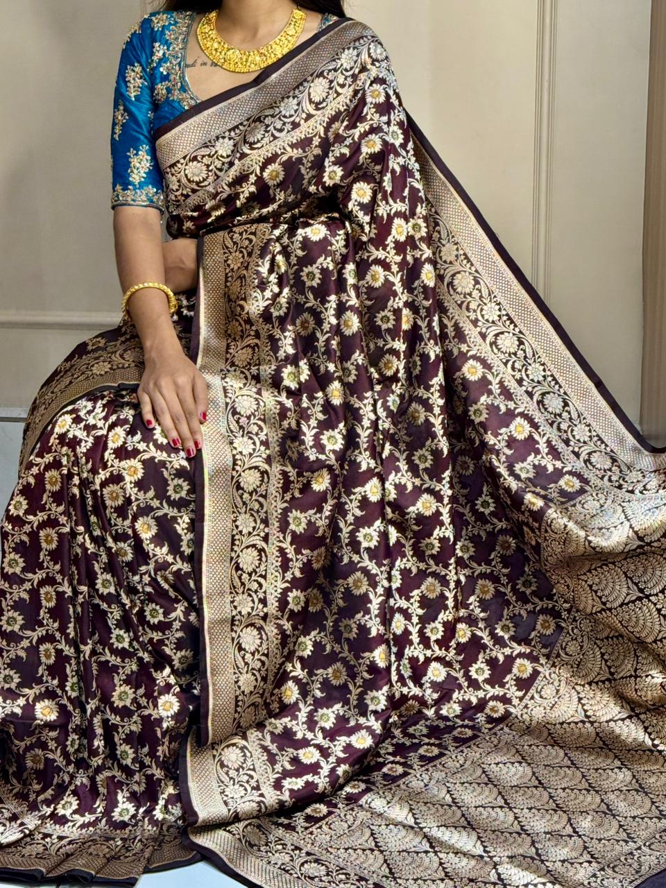 This saree captures the royal charm of Banaras in every weave. Its soft silk drape, luxurious zari patterns, and timeless appeal make it a must-have heirloom for every elegant wardrobe.