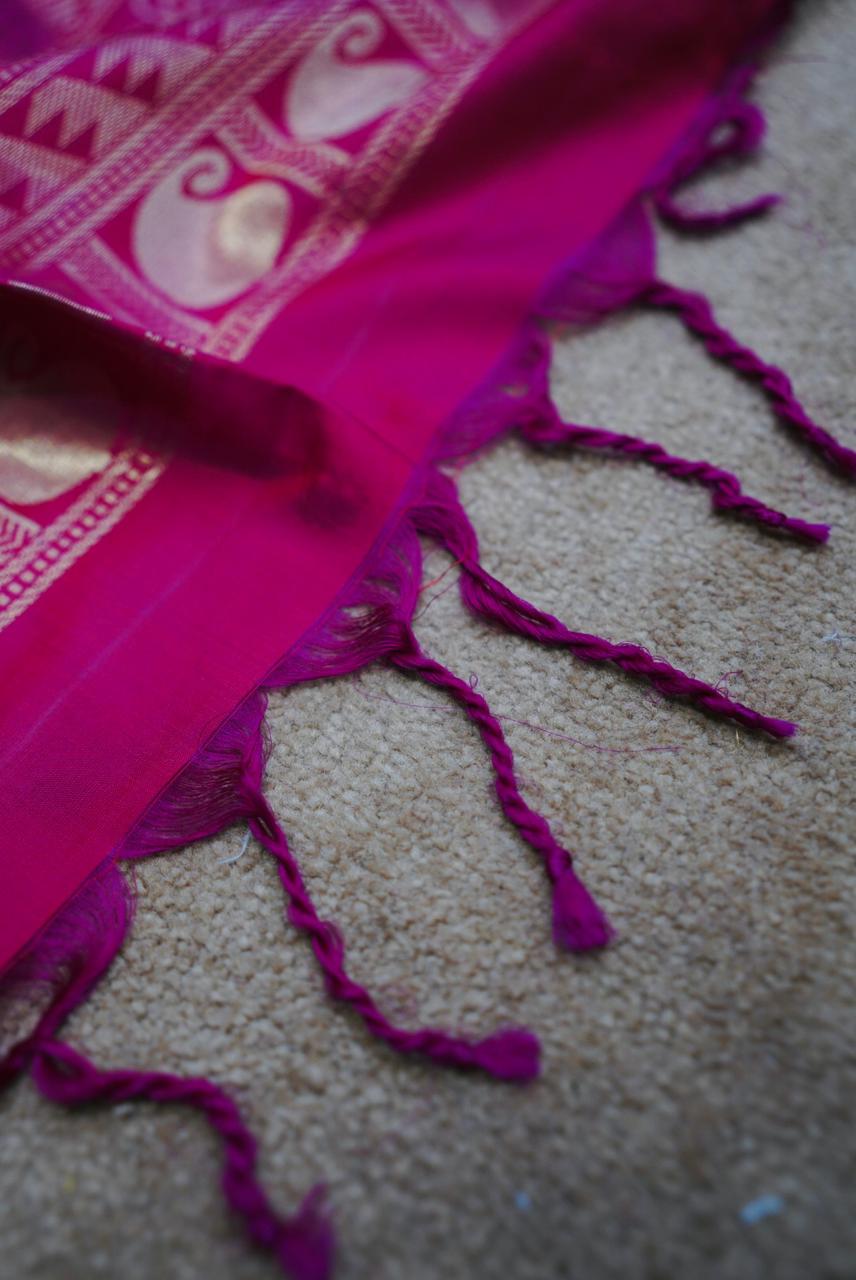 Crafted from pure silk with rich zari, Pattu Kanjivaram sarees are the epitome of elegance and tradition. Their lustrous texture, vibrant colors, and timeless motifs make them perfect for weddings, festive occasions, and grand celebrations. A true heirloom piece, it combines durability, beauty, and cultural heritage in every drape.
