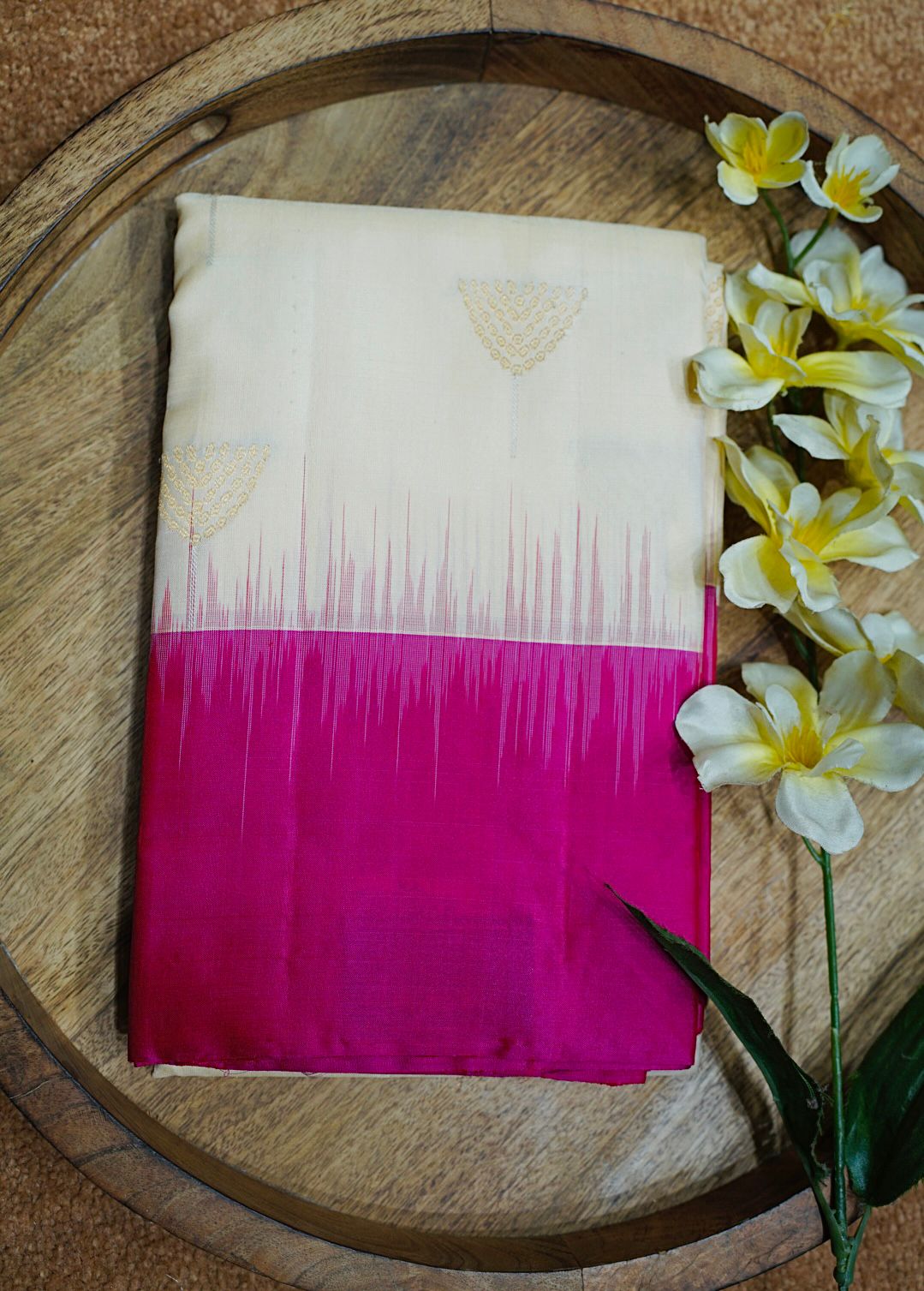 Design: Intricate traditional zari and thread detailing with timeless motifs, reflecting heritage craftsmanship.