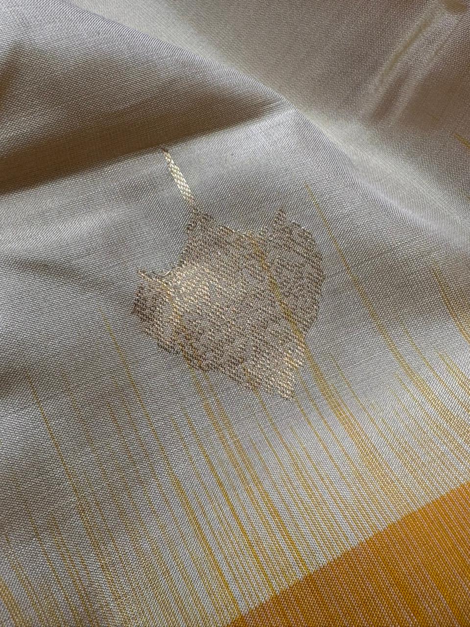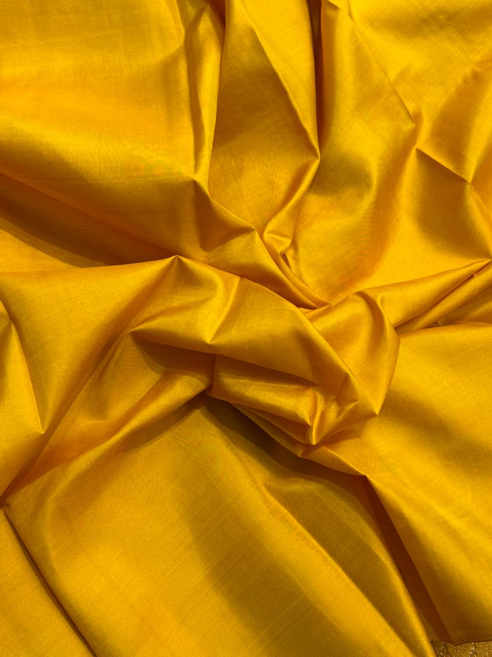100% Pure Kanchipuram Silk, known for its rich texture and durability.