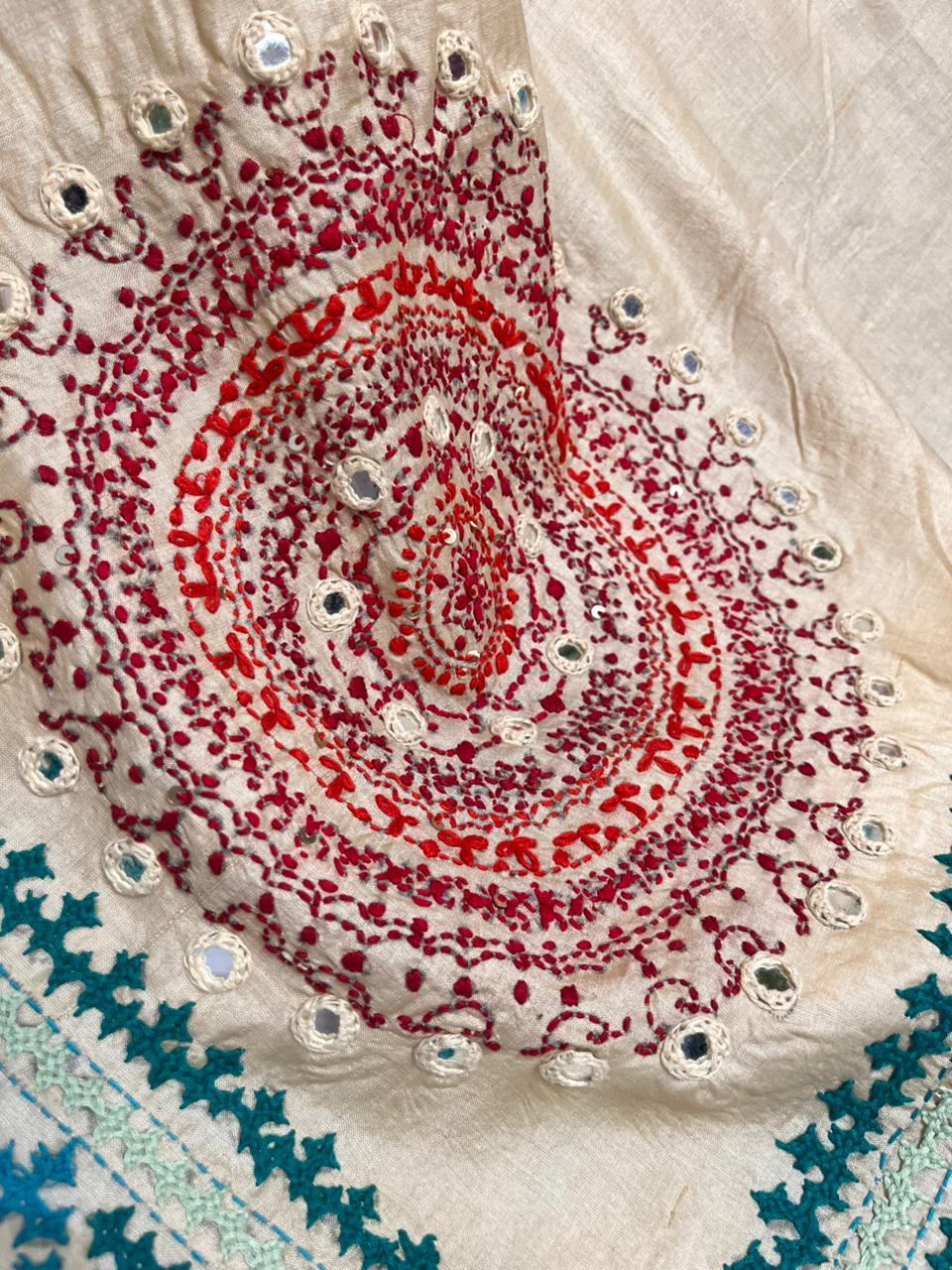 Work: Authentic Lambani (Banjara) Hand Embroidery — featuring bold stitches, mirror work, geometric motifs, and colourful threads that reflect the rich tribal culture of the Lambani community.