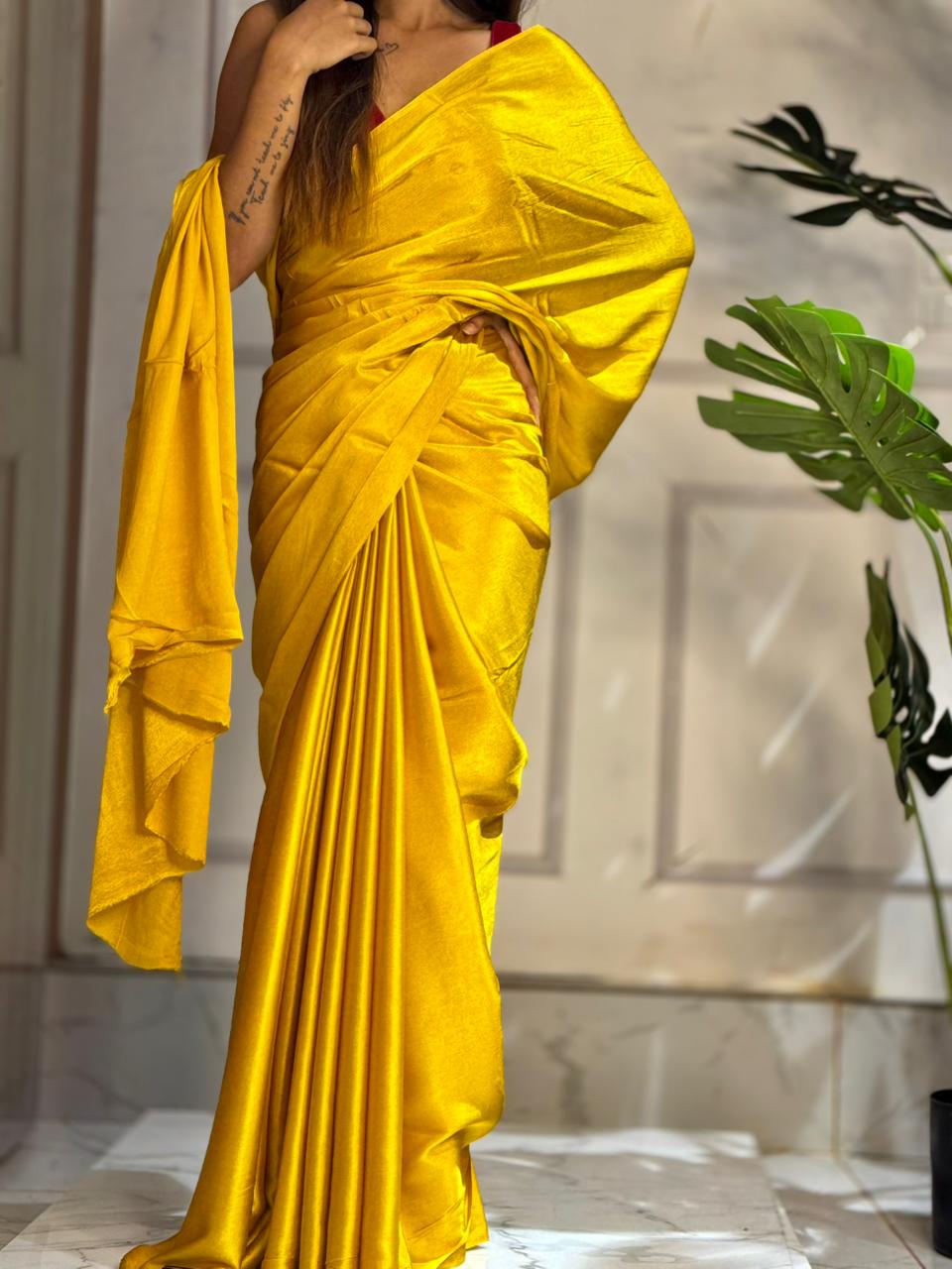 Elegant, fluid, and effortlessly chic — the Plain Satin Crepe Saree is a true symbol of minimalist sophistication. Crafted to perfection, it features a smooth satin sheen and the soft drape of crepe, creating a look that’s both modern and timeless.